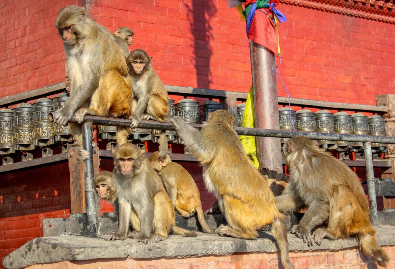 • Monkeys, food stalls, and souvenir shops selling prayer beads and flags