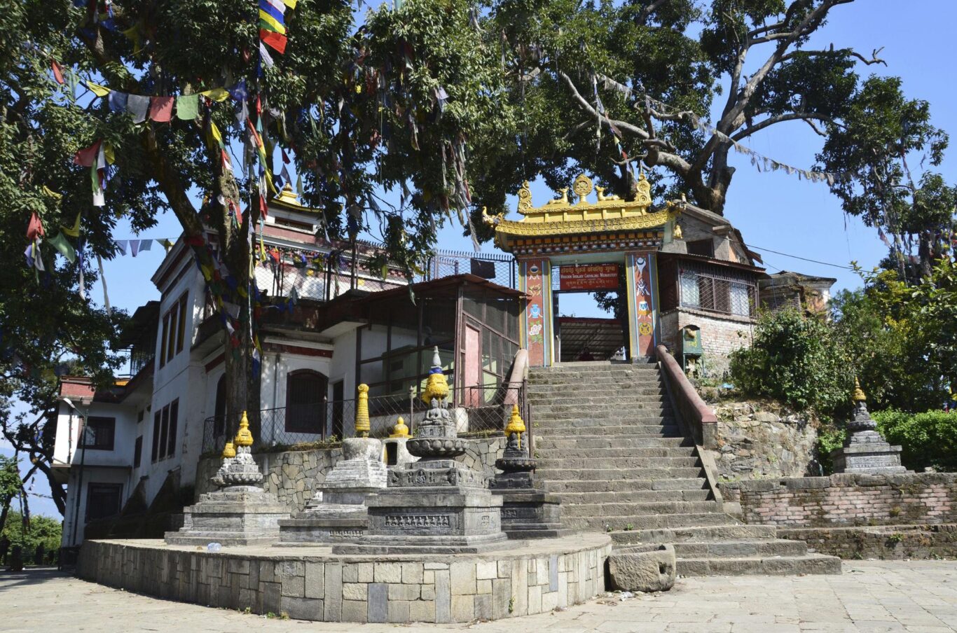 The complex reflects deep Newari, Tibetan, and Nepalese traditions, with influence from Chinese, Thai, Japanese, and Korean Buddhists.